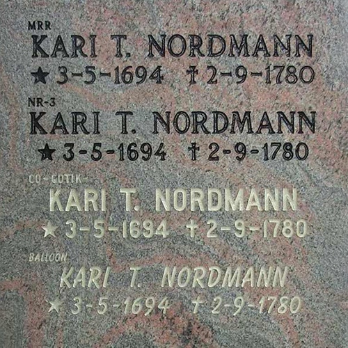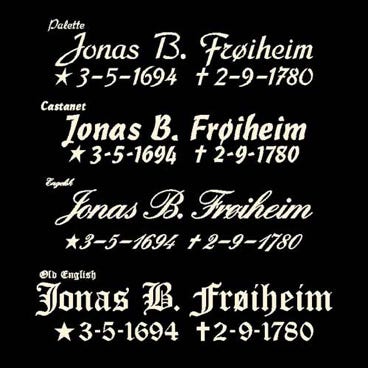 Vi har en rekke historiske gravsteinsmodeller som tidligere er tegnet av våre medlemmer, som ikke finnes utstilt, men som finnes i vårt illedarkiv. Disse kan fremdeles hogges etter bestilling.