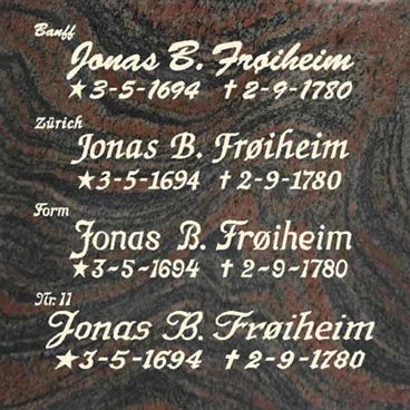 Oppgitt pris er inkl. et navn og datolinje, oppsetting av steinen i Oslo og nær omegn, samt 25% mva.