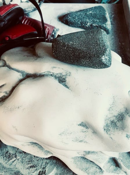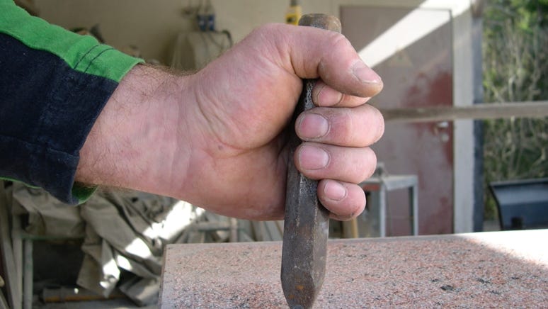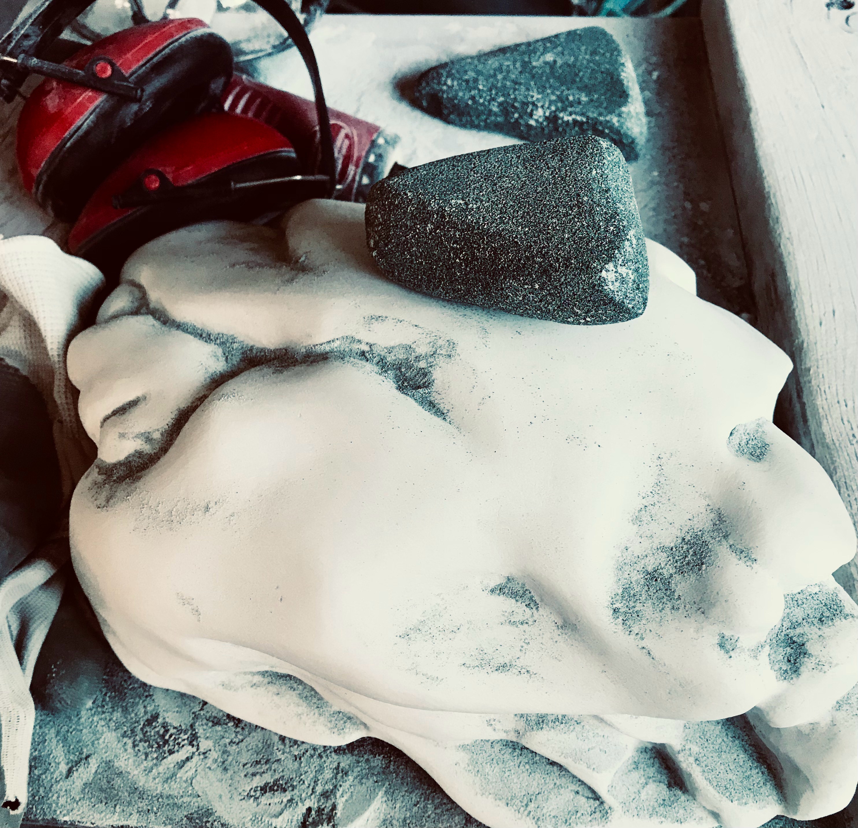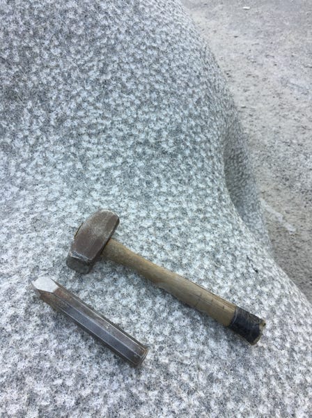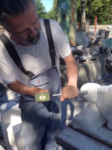 Som medlem av billedhoggerforeningen har man tilgang på velutrustede verksteder for bearbeiding av stein.