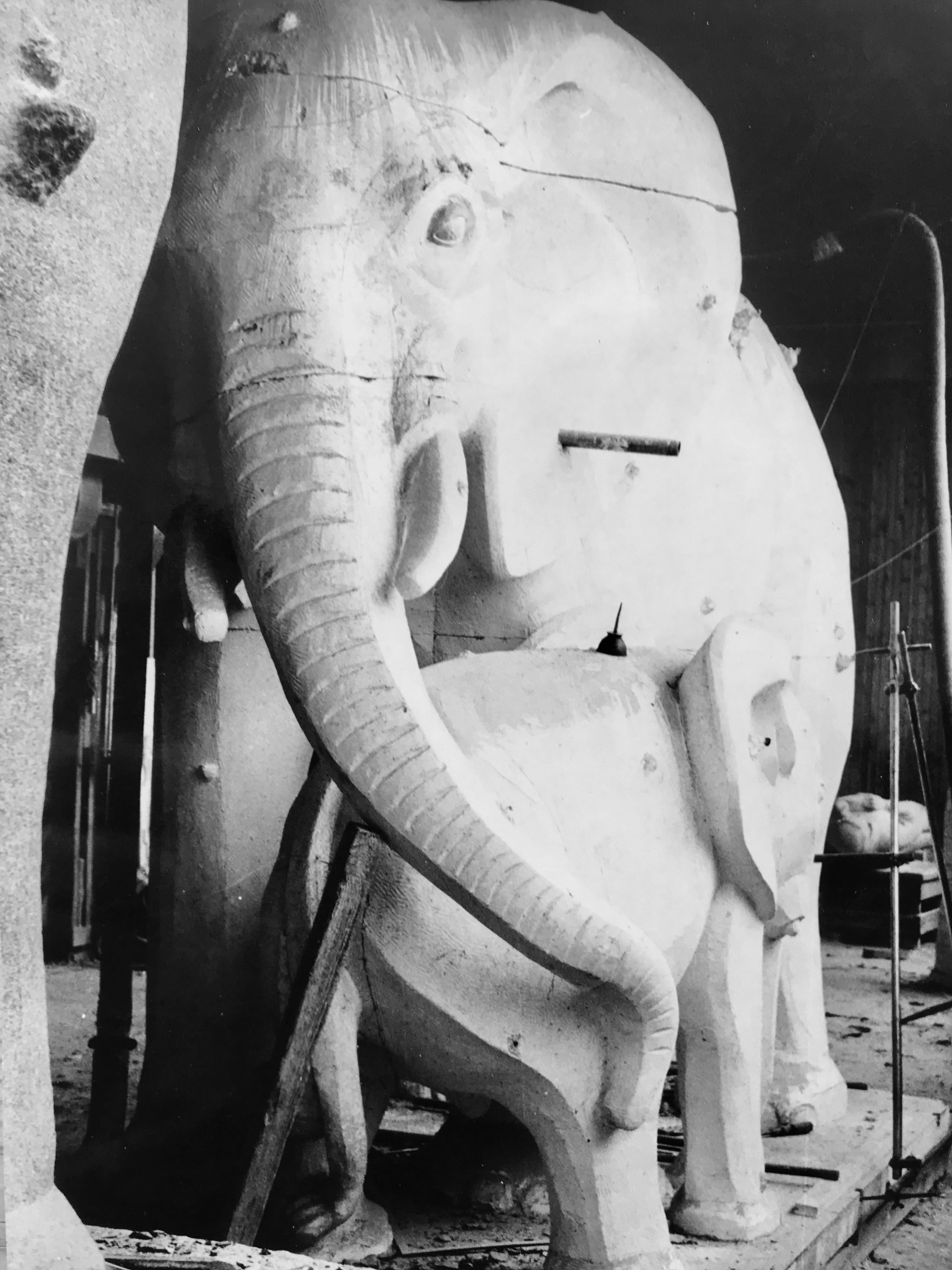 På 1950 og 60-tallet utførte STEINSKULPTUR også oppdrag fra utlandet. Et eksempel er 37-tonns monolitten «Cow Elephant and Calf» til Philadelphia Zoo i USA. Gipsmodellen i full størrelse ble stående på Helsfyr i årevis etter at steinskulpturen ble fraktet til Oslo havn og lastet om bord i amerikabåten «Tennessee» for ferd over Atlanterhavet, en tidlig høstdag i 1962. Helsfyrelefanten var et fenomen.