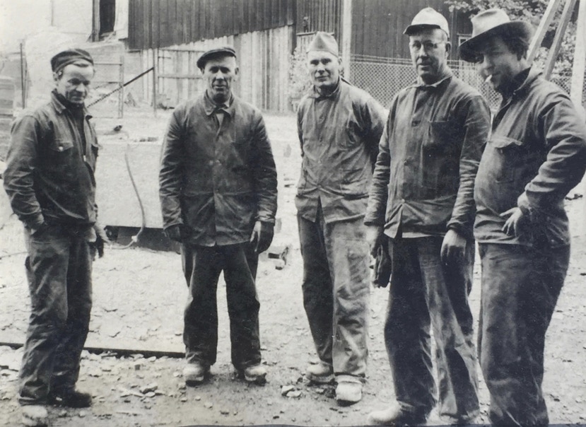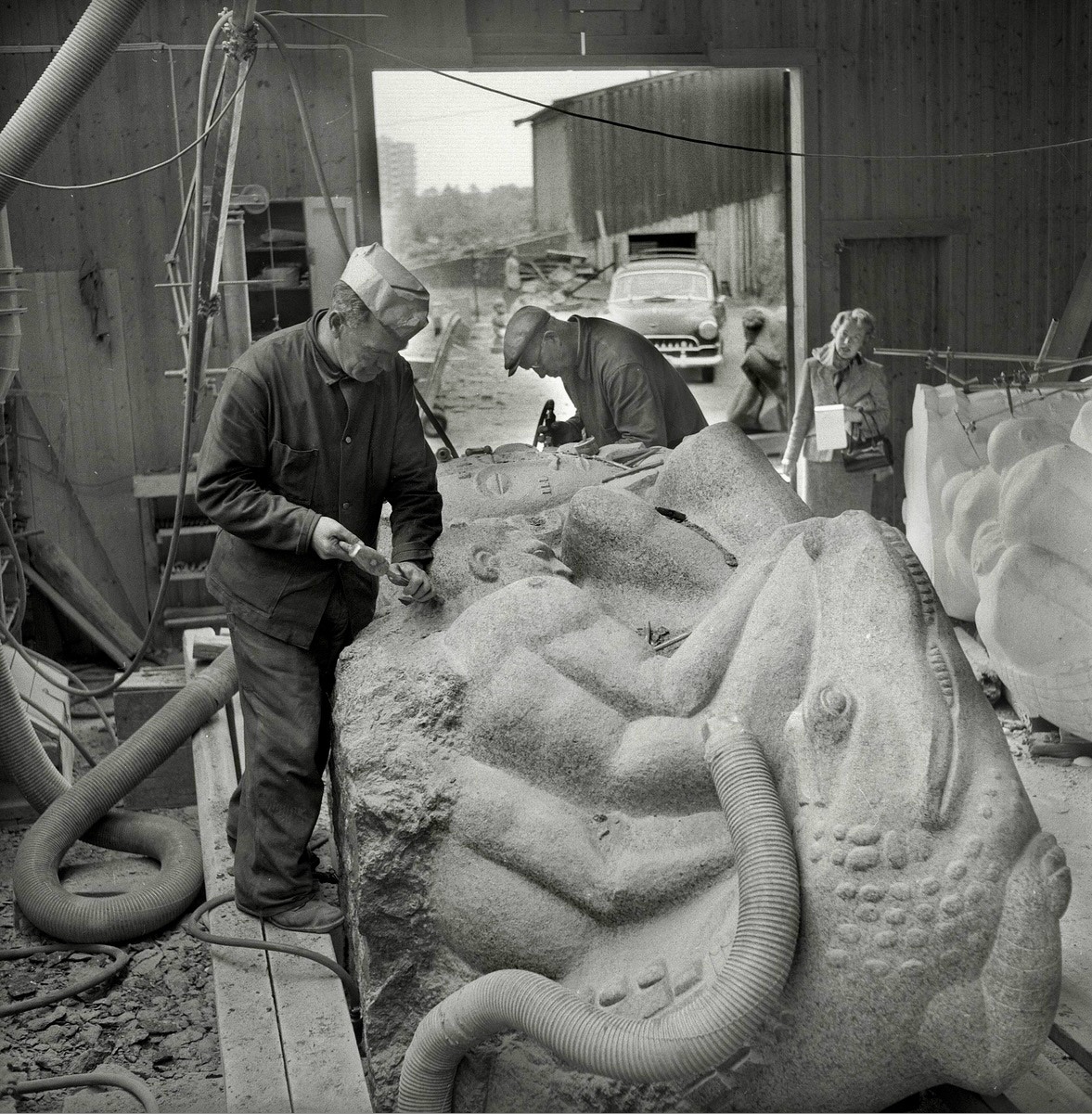 Billedhogger Kåre Orud, steinhogger Fritz Olsen, ukjent, ukjent, billedhogger Arne Vinje Gunnerud.