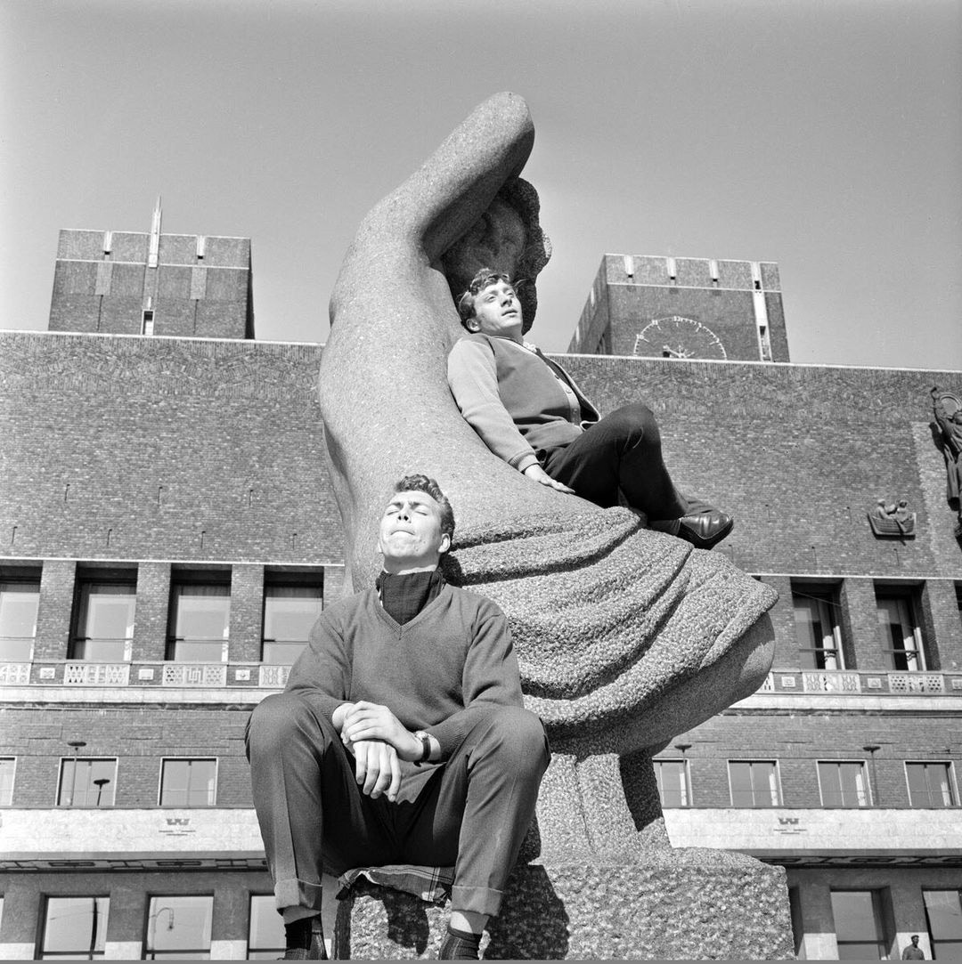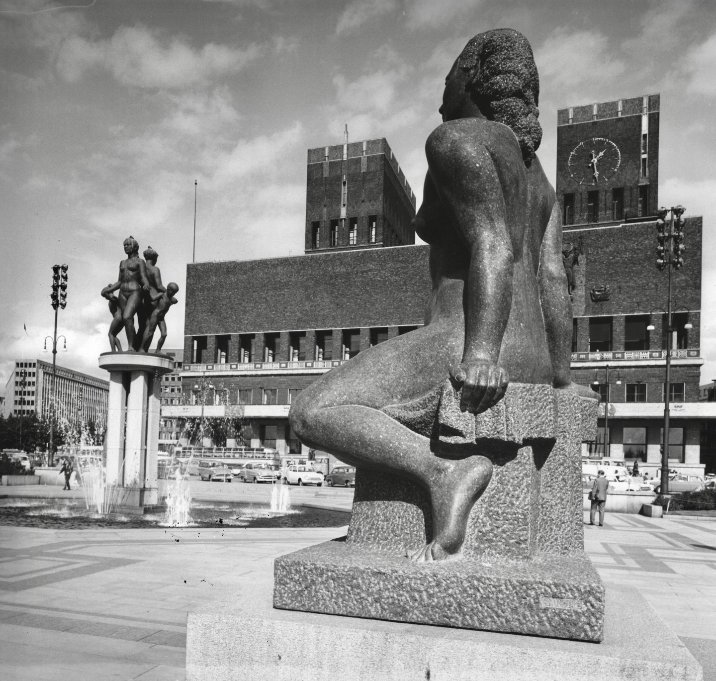 Emil Lies kvinneskulpturer 1953 - 1955. Samtlige steinskulpturer på Rådhusplassen i Oslo er hogget av andelslagets dyktige skulpturhoggere.